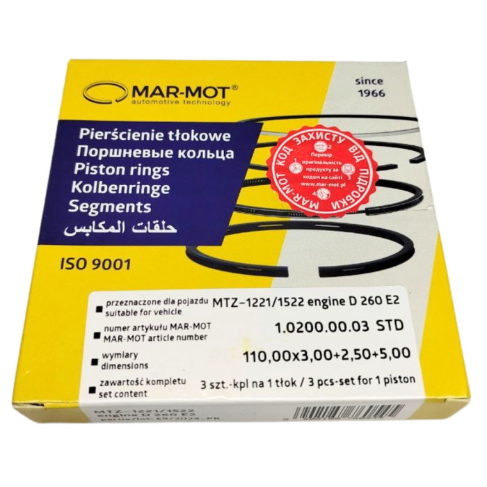 Опис Кільця поршневі Д 260 MAR-MOT (вир-во Польща) (поршнекомплект)